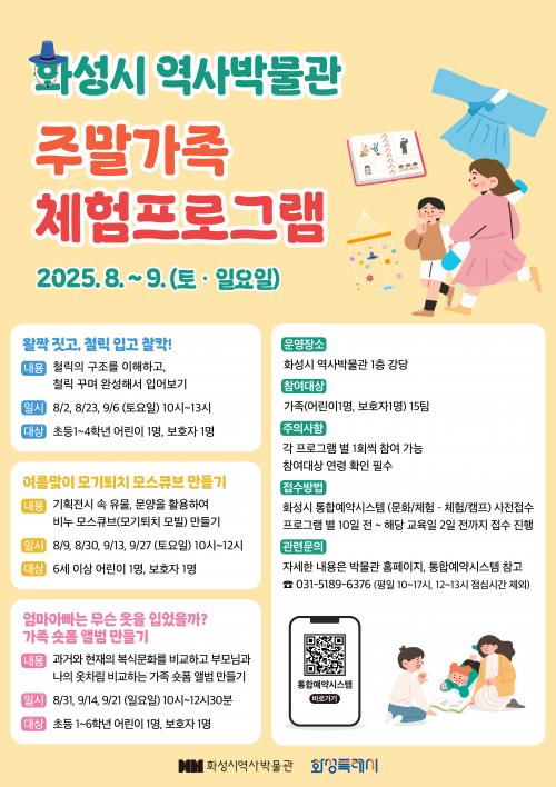 [½Åµ¿¾Æ¹æ¼Û=ÀÌÀçö±âÀÚ] È­¼ºÆ¯·Ê½Ã(½ÃÀå Á¤¸í±Ù)°¡ ¿À´Â 8¿ùºÎÅÍ 9¿ù±îÁö È­¼º½Ã¿ª»ç¹Ú¹°°ü¿¡¼­ °¡Á·ÀÌ ÇÔ²² Áñ±æ ¼ö ÀÖ´Â ¡®ÁÖ¸»°¡Á· üÇèÇÁ·Î±×·¥¡¯À» ¿î¿µÇÑ´Ù. À̹ø ÁÖ¸»°¡Á· üÇèÇÁ·Î±×·¥Àº È­¼º½Ã¿ª»ç¹Ú¹°°ü Á¦19ȸ ±âȹÀü½Ã ¡®¿ÊÀÚ¶ô, ±â¾ïÀÇ ÀÚ¶ô¡¯°ú ¿¬°è¡¦