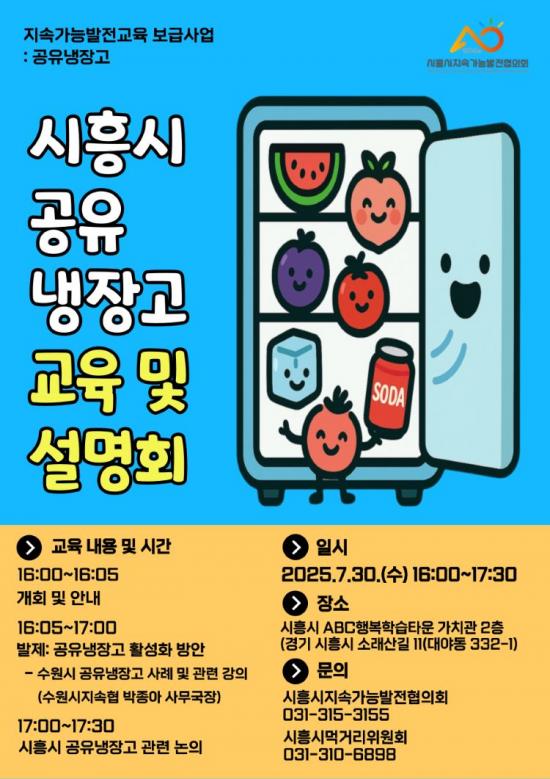 [½Åµ¿¾Æ¹æ¼Û ½ÃÈï½Ã=À̽ŵ¿±âÀÚ] ½ÃÈï½ÃÁö¼Ó°¡´É¹ßÀüÇùÀÇȸ´Â 7¿ù 30ÀÏ ¿ÀÈÄ 4½Ã, ½ÃÈïABCÇູÇнÀŸ¿î °¡Ä¡°ü 2Ãþ ´Ù¸ñÀûȦ¿¡¼­ ¡®°øÀ¯³ÃÀå°í ¼³¸íȸ ¹× ±³À°¡¯À» °³ÃÖÇÑ´Ù. À̹ø ¼³¸íȸ´Â ½ÃÈï½ÃÁö¼Ó°¡´É¹ßÀüÇùÀÇȸ¿Í ½ÃÈï½Ã¸Ô°Å¸®À§¿øÈ¸ °øµ¿À¸·Î ÁÖ°üÇϸç, ź¼ÒÁß¡¦