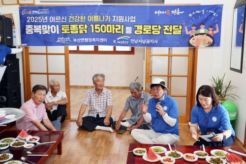 [½Åµ¿¾Æ¹æ¼Û Àü³²ÀåÈï=¹Ú±¤¿Á±âÀÚ] ÀåÈï ºÎ»ê¸é(¸éÀå ¹ÚÁø¿µ)¿¡¼­´Â 30ÀÏ Áߺ¹À» ¸ÂÀÌÇÏ¿© Áö¿ª °æ·Î´ç 25°³¼Ò¸¦ ¹æ¹®ÇØ ÅäÁ¾´ß 150¸¶¸®¿Í ¼ö¹Ú µî º¸¾ç½ÄÀ» Àü´ÞÇß´Ù. À̹ø ¾î¸£½Å ¿©¸§³ª±â Áö¿ø»ç¾÷Àº Æø¿° °¡¿îµ¥ ¾î¸£½ÅµéÀÇ ¾ÈºÎ¸¦ ¹¯°í °Ç°­ÇÑ ¿©¸§³ª±â¸¦ ±â¿ø¡¦