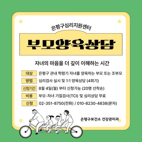 [½Åµ¿¾Æ¹æ¼Û ÀºÆò±¸=À̽ŵ¿±âÀÚ] ¼­¿ï ÀºÆò±¸´Â Çзɱâ Àڳฦ ¾çÀ°ÇÏ´Â ºÎ¸ð¿Í Á¶ºÎ¸ð¸¦ ´ë»óÀ¸·Î ¡®ºÎ¸ð¾çÀ°»ó´ã¡¯À» ¿î¿µÇϰí Âü¿©ÀÚ¸¦ ¸ðÁýÇÑ´Ù°í ¹àÇû´Ù. ÀºÆò±¸º¸°Ç¼Ò´Â ÀÚ³à ¾çÀ°¿¡ ´ëÇÑ ºÎ¸ð¿Í Á¶ºÎ¸ðÀÇ °í¹ÎÀ» ÇØ°áÇϱâ À§ÇØ ¡®ÀÚ³àÀÇ ¸¶À½À» ´õ ±íÀÌ ÀÌÇØÇÏ¡¦