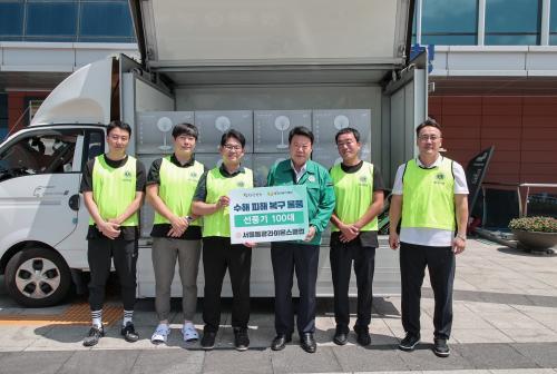 [½Åµ¿¾Æ¹æ¼Û=ÀÌÀçö±âÀÚ] ¼­¿ï µ¿±¤¶óÀ̿½º Ŭ·´(ȸÀå ±èÁ¤È¯)Àº 8¿ù 7ÀÏ ´çÁø½ÃûÀ» ¹æ¹®ÇØ ÁýÁßÈ£¿ì·Î ÇÇÇØ¸¦ º» Áö¿ª ÁֹεéÀ» À§ÇØ ¼±Ç³±â 100´ë¸¦ ±âºÎÇß´Ù. ±âŹµÈ ¹°Ç°Àº ´çÁø½Ãº¹ÁöÀç´ÜÀ» ÅëÇØ ¼öÇØ ÇÇÇØ°¡ ¹ß»ýÇÑ °¡Á¤¿¡ Àü´ÞµÉ ¿¹Á¤ÀÌ´Ù. ¼­¿ï µ¿±¤¶óÀÌ¡¦