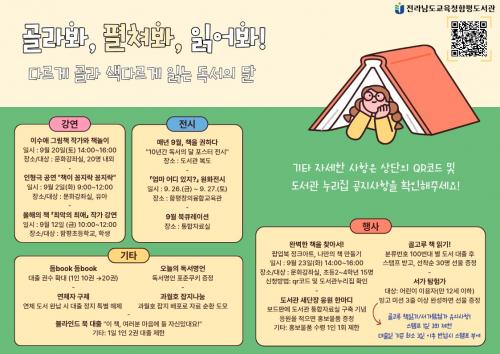 [½Åµ¿¾Æ¹æ¼Û Àü³²ÇÔÆò=À̽ŵ¿±âÀÚ] Àü¶ó³²µµ±³À°Ã»ÇÔÆòµµ¼­°üÀº 9¿ù ÇÑ ´Þ µ¿¾È µ¶¼­ÀÇ ´ÞÀ» ¸Â¾Æ »õ·Ó°Ô ´ÜÀåÇÑ ÅëÇÕÀÚ·á½Ç¿¡¼­ ´Ùä·Î¿î µ¶¼­¹®È­ Çà»ç¸¦ ¿î¿µÇÑ´Ù. ¡°°ñ¶óºÁ, ÆîÃĺÁ, ÀоîºÁ!¡±¶ó´Â ÁÖÁ¦·Î ÆîÃÄÁö´Â À̹ø µ¶¼­ÀÇ ´ÞÀº Áö¿ª Áֹΰú ÇлýµéÀÌ Æò¼Ò Á¢¡¦