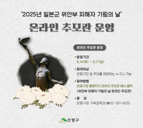 [½Åµ¿¾Æ¹æ¼Û ÀºÆò±¸=À̽ŵ¿±âÀÚ] ¼­¿ï ÀºÆò±¸´Â ¡®ÀϺ»±º À§¾ÈºÎ ÇÇÇØÀÚ ±â¸²ÀÇ ³¯¡¯À» ¸ÂÀÌÇØ Áö³­ 14ÀϺÎÅÍ 17ÀϱîÁö 4Àϰ£ ¡®2025³â À§¾ÈºÎ ÇÇÇØÀÚ ±â¸²ÀÇ ³¯ ¿Â¶óÀÎ Ã߸ð°ü¡¯À» ¿î¿µÇß´Ù°í ¹àÇû´Ù. ±¸´Â Áö³­ 14ÀÏ ÀºÆòÆòÈ­°ø¿ø¿¡¼­ ÇåÈ­, Çå½Ã³¶µ¶, À§¾ÈºÎ °ü·Ã¡¦