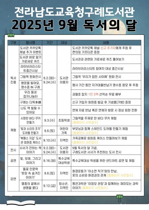 Àü¶ó³²µµ±³À°Ã»±¸·Êµµ¼­°ü, Áö½Ä°ú °¨¼ºÀÇ Ç⿬ ¡®9¿ù µ¶¼­ÀÇ ´Þ¡¯ ¿î¿µ