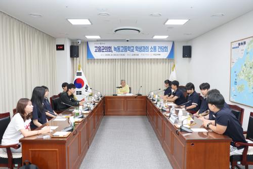 [½Åµ¿¾Æ¹æ¼Û Àü³²°íÈï=¹Ú±¤¿Á±âÀÚ] °íÈﱺÀÇȸ(ÀÇÀå ·ùÁ¦µ¿)´Â 20ÀÏ ±ºÀÇȸ 1Ãþ ¼ÒȸÀǽǿ¡¼­¡¸³ìµ¿°íµîÇб³ Çлý°úÀÇ ¼ÒÅë °£´ãȸ¡¹¸¦ °³ÃÖÇß´Ù. À̹ø °£´ãȸ´Â û¼Ò³â »ýȰȯ°æ °³¼±°ú Áö¿ª»çȸ ¹ßÀüÀ» À§ÇØ ÇлýµéÀÇ ¸ñ¼Ò¸®¸¦ Á÷Á¢ µè°í À̸¦ ÀÇÁ¤È°µ¿¿¡ ¹Ý¿µÇϱâ À§¡¦
