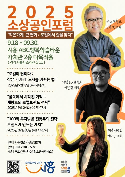 [½Åµ¿¾Æ¹æ¼Û ½ÃÈï½Ã=À̽ŵ¿±âÀÚ] ¡®½ÃÈïû³â¼Ò»ó°øÀÎÇùȸ¡¯°¡ ÁÖÃÖÇÏ´Â ¡¸2025 ¼Ò»ó°øÀÎÆ÷·³¡¹ÀÌ ¿À´Â 9¿ù 18ÀϺÎÅÍ 9¿ù 30ÀϱîÁö ½ÃÈïABCÇູÇнÀŸ¿î °¡Ä¡°ü 2Ãþ ´Ù¸ñÀûȦ¿¡¼­ °³ÃֵȴÙ. À̹ø Æ÷·³Àº ¡®ÀÛÀº °¡°Ô, Å« º¯È­: ·ÎÄÿ¡¼­ ±æÀ» ã´Ù¡¯¶ó´Â ÁÖÁ¦·Î, ¼Ò»ó°øÀΡ¦