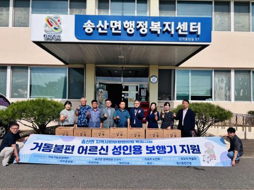 [½Åµ¿¾Æ¹æ¼Û=ÀÌÀçö±âÀÚ] ¼Û»ê¸é Áö¿ª»çȸº¸ÀåÇùÀÇü(¹Î°£À§¿øÀå ±èÇâ°ï, °ø°øÀ§¿øÀå È«°æÇ¥)´Â Áö¿ª»çȸ ³» ¾ÈÀüÇÑ µ¹º½ ü°è¸¦ °­È­ÇÏ°í ¼Û»ê¸é¿¡ °ÅÁÖÇÏ´Â °Åµ¿ ºÒÆí ¾î¸£½ÅÀ» À§ÇÑ ¼ºÀÎ¿ë º¸Çà±â Áö¿ø »ç¾÷À» ÁøÇàÇÑ´Ù°í 16ÀÏ ¹àÇû´Ù. À̹ø »ç¾÷Àº ³ëÀοä¾çº¸Ç衦