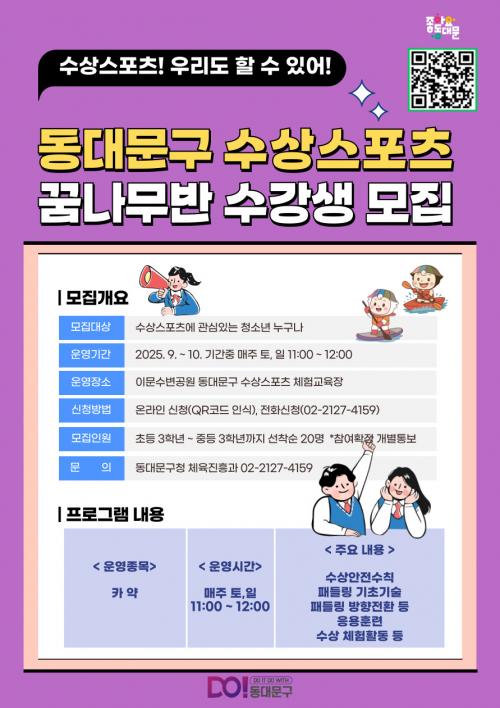 [½Åµ¿¾Æ¹æ¼Û µ¿´ë¹®±¸=À̽ŵ¿±âÀÚ] ¼­¿ï µ¿´ë¹®±¸´Â ¡¸¼ö»ó½ºÆ÷Ã÷ ²Þ³ª¹«¹Ý¡¹À» °³¼³ÇØ 9¿ùºÎÅÍ º»°Ý ¿î¿µ¿¡ µé¾î°¬´Ù°í ¹àÇû´Ù. <@1> ¡¸¼ö»ó½ºÆ÷Ã÷ ²Þ³ª¹«¹Ý¡¹Àº Ä«¾à°ú SUP(Stand Up Paddleboard) µî ¼ö»ó½ºÆ÷Ã÷¸¦ Á÷Á¢ ¹è¿ì°í Áñ±æ ¼ö Àִ üÇèÇü ½ºÆ÷Ã÷ ÇÁ·Î±×·¥¡¦