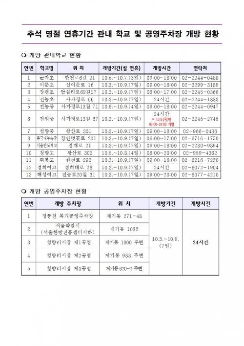 [½Åµ¿¾Æ¹æ¼Û µ¿´ë¹®±¸=À̽ŵ¿±âÀÚ] ¼­¿ï µ¿´ë¹®±¸´Â Ãß¼® ¿¬ÈÞ¸¦ ¸Â¾Æ Áֹΰú ¹æ¹®°´, ¿ª±Í¼º°´ µîÀÇ ÁÖÂ÷ ÆíÀǸ¦ µ½±â À§ÇØ 10¿ù 3ÀϺÎÅÍ 9ÀϱîÁö 7Àϰ£ °ü³» Çб³ ¹× °ø¿µÁÖÂ÷Àå 18°³¼Ò¸¦ ¹«·á·Î °³¹æÇÑ´Ù°í ¹àÇû´Ù. ¹«·á °³¹æ ´ë»óÀº ±ºÀÚÃʵîÇб³¸¦ Æ÷ÇÔÇÑ ÃÊ¡¤Áß¡¦