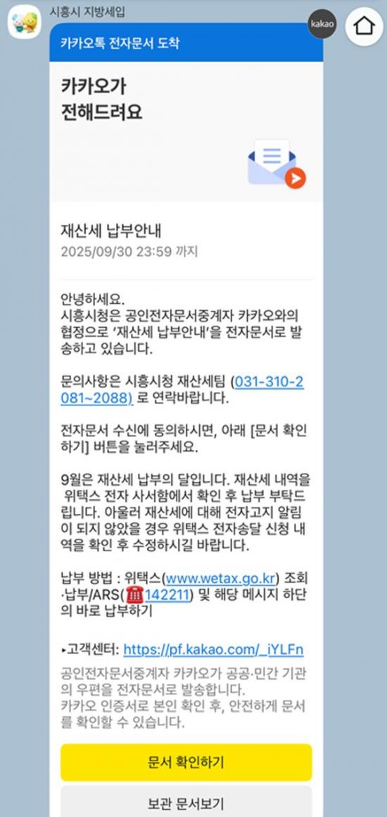 [½Åµ¿¾Æ¹æ¼Û ½ÃÈï½Ã=À̽ŵ¿±âÀÚ] ½ÃÈï½Ã´Â ½Ã¹Î ÆíÀÇ ÁõÁø°ú ÇàÁ¤ È¿À²¼º °­È­¸¦ À§ÇØ Ä«Ä«¿ÀÅåÀ» Ȱ¿ëÇÑ ¡®½Ã¼¼ ¾È³» ¸ð¹ÙÀÏ ÀüÀÚ°íÁö ¼­ºñ½º¡¯¸¦ º»°Ý µµÀÔÇϰí, Áö³­ 9¿ù 16ÀϺÎÅÍ ½ÃÇà¿¡ µé¾î°¬´Ù. ÀÌ ¼­ºñ½º´Â º°µµÀÇ ½Åû ÀýÂ÷ ¾øÀÌ ³³¼¼ÀÚ º»ÀÎ ¸íÀÇÀÇ Ä«Ä«¿À¡¦