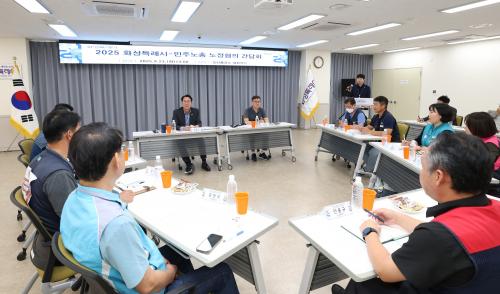 [½Åµ¿¾Æ¹æ¼Û=ÀÌÀçö±âÀÚ] È­¼ºÆ¯·Ê½Ã(½ÃÀå Á¤¸í±Ù)¿Í ¹ÎÁÖ³ëÃÑ °æ±âÁö¿ªº»ºÎ ¼ö¿ø¿ëÀοÀ»êÈ­¼ºÁöºÎ°¡ 23ÀÏ Ã¹ °ø½Ä °£´ãȸ¸¦ ¿­°í ³ëÁ¤ °£ ¼ÒÅë°ú »ó»ýÀÇ ¹°²¿¸¦ ÅÕ´Ù. À̳¯ µ¿ÅºÃâÀå¼Ò ´ëȸÀǽǿ¡¼­ ¿­¸° °£´ãȸ¿¡´Â Á¤¸í±Ù È­¼ºÆ¯·Ê½ÃÀå, ÀÌÅñ¸ ±â¾÷ÅõÀÚ½ÇÀåÀ» ºñ¡¦
