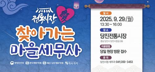 [½Åµ¿¾Æ¹æ¼Û=ÀÌÀçö±âÀÚ] ´çÁø½Ã(½ÃÀå ¿À¼ºÈ¯)´Â ¿¹»ê´çÁø¼¼¹«»çȸ(ÀÓÁ¾¿­ ȸÀå)¿Í Çù¾÷ÇØ ¿À´Â 9¿ù 29ÀÏ ¿ÀÈÄ 1½Ã 30ºÐºÎÅÍ 4½Ã±îÁö ´çÁøÀüÅë½ÃÀå ¾î½ÃÀå ±¤Àå ¾Õ¿¡¼­ Ãß¼® ¸íÀýÀ» ¸Â¾Æ¡¸ÀüÅë½ÃÀåäñ ã¾Æ°¡´Â ¸¶À»¼¼¹«»ç¡¹ Çà»ç¸¦ ¿î¿µÇÑ´Ù°í 25ÀÏ ¹àÇû´Ù. À̹ø ¼¼¡¦