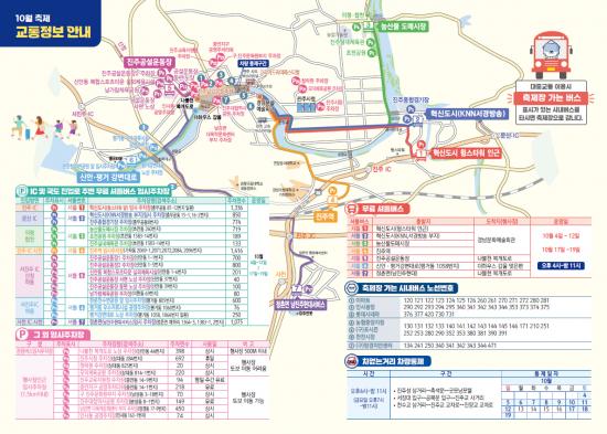 [½Åµ¿¾Æ¹æ¼Û °æ³²ÁøÁÖ=³²±Ã¿µ±â±âÀÚ] ÁøÁֽð¡ ¿À´Â 10¿ù 4ÀϺÎÅÍ 19ÀϱîÁö, 16Àϰ£ °³ÃֵǴ 10¿ù ÃàÁ¦±â°£ °ü¶÷°´µéÀÌ ¾ÈÀüÇÏ°í Æí¸®ÇÏ°Ô ÃàÁ¦ÀåÀ» ¹æ¹®ÇÒ ¼ö ÀÖµµ·Ï ¸ÂÃãÇü ±³Åë¼­ºñ½º¸¦ Á¦°øÇÑ´Ù. ÁøÁֽô Ãß¼® ¿¬ÈÞ¸¦ Æ÷ÇÔÇÑ 10¿ù ÃàÁ¦±â°£¿¡ ¼ö¹é¸¸ ¸íÀÇ °ü¡¦