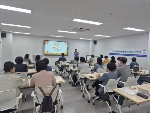 [½Åµ¿¾Æ¹æ¼Û °æ³²ÁøÁÖ=³²±Ã¿µ±â±âÀÚ] ÁøÁֽô 14ÀÏ »óÆòº¹ÇÕ¹®È­¼¾ÅÍ 2Ãþ ÇÁ·Î±×·¥ °­Àǽǿ¡¼­ ÁøÁֽà ½ÅÁß³â(50¼¼ ÀÌ»ó 64¼¼ ÀÌÇÏ) 30¸íÀÌ Âü¼®ÇÑ °¡¿îµ¥ ¡®2025³â ÁøÁֽà ½ÅÁß³â ÀλýÀ̸ðÀÛÇб³¡¯ ÀÔÇнÄÀ» °³ÃÖÇß´Ù. À̳¯ 30¸íÀÇ ½ÅÁß³â ÀÔÇлýµéÀº ù ¸¸³²ÀÇ ¾î¡¦