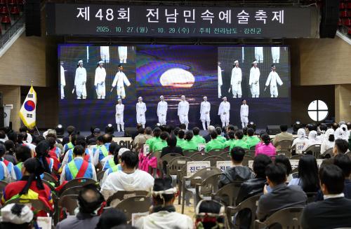 [½Åµ¿¾Æ¹æ¼Û °­Áø=¹Ú±¤¿Á±âÀÚ] Á¦48ȸ Àü¶ó³²µµ ¹Î¼Ó¿¹¼úÃàÁ¦°¡ ¡®Àü³²ÀÇ ¾ó°ú Èï, °­Áø¿¡¼­ Çϳª·Î!¡¯¸¦ ÁÖÁ¦·Î 27ÀÏ °­Áø±º Á¦1½Ç³»Ã¼À°°ü ÀÏ¿ø¿¡¼­ ¼ºÈ²¸®¿¡ ¸·À» ¿Ã·È´Ù. À̹ø ÃàÁ¦´Â Àü³²ÀÇ ÀüÅë ¹Î¼Ó¿¹¼úÀ» º¸Á¸¡¤°è½ÂÇÏ°í µµ¹Î È­ÇÕÀ» µµ¸ðÇϱâ À§ÇØ ¸Å³â À̾