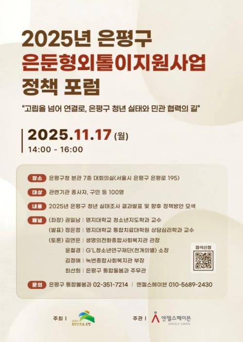 [½Åµ¿¾Æ¹æ¼Û ÀºÆò±¸=À̽ŵ¿±âÀÚ] ¼­¿ï ÀºÆò±¸´Â ¿Ü·Î¿ò°ú °í¸³ À§Çè¿¡ Ãë¾àÇÑ Ã»³âÃþÀ» ´ë»óÀ¸·Î ¹Î°üÀÌ Çù·ÂÇÒ ¹æ¾ÈÀ» ¸ð»öÇϰíÀÚ ¿À´Â 17ÀÏ ¡®°í¸³¡¤ÀºµÐ Á¤Ã¥Æ÷·³¡¯À» ÃßÁøÇÑ´Ù°í ¹àÇû´Ù. ±¸´Â Áö³­ 4¿ùºÎÅÍ 7¿ù±îÁö ÀºÆò±¸¿¡ °ÅÁÖÇϴ û³â 2õ¿© ¸íÀ» ´ë»óÀ¸·Î ¡¦