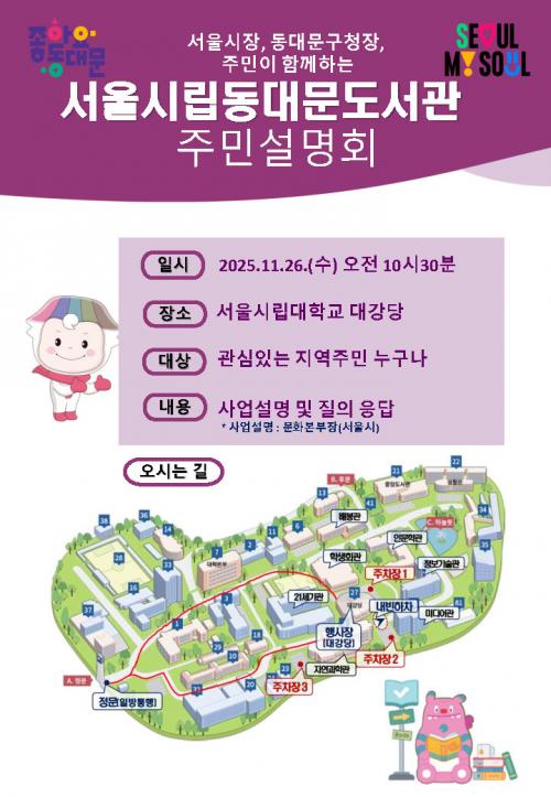 [½Åµ¿¾Æ¹æ¼Û µ¿´ë¹®±¸=À̽ŵ¿±âÀÚ] ¼­¿ï µ¿´ë¹®±¸´Â ¿À´Â 26ÀÏ ¿ÀÀü 10½Ã, ¼­¿ï½Ã¸³´ëÇб³ ´ë°­´ç¿¡¼­ ¡®¼­¿ï½Ã¸³µ¿´ë¹®µµ¼­°ü °Ç¸³ Áֹμ³¸íȸ¡¯¸¦ °³ÃÖÇÑ´Ù°í ¹àÇû´Ù. À̹ø ¼³¸íȸ´Â ¼­¿ï½Ã¸³µ¿´ë¹®µµ¼­°ü °Ç¸³°ú °ü·ÃÇÑ ÃßÁø°æ°ú, ÅõÀÚ½É»ç °úÁ¤, ÇâÈÄ ÀÏÁ¤ µîÀ» ¡¦