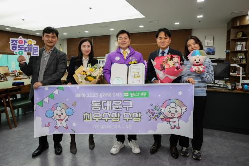 [½Åµ¿¾Æ¹æ¼Û µ¿´ë¹®±¸=À̽ŵ¿±âÀÚ] ¼­¿ï µ¿´ë¹®±¸°¡ ¡®Á¦11ȸ 2025 ¿ÃÇØÀÇ SNS¡¯ ½Ã»ó¿¡¼­ ºí·Î±× ºÎ¹® ÃÖ¿ì¼ö»óÀ» ¼ö»óÇß´Ù°í 26ÀÏ ¹àÇû´Ù. ±¸´Â ¾Õ¼­ ¡®´ëÇѹα¹ SNS ´ë»ó¡¯ ¿¡¼­µµ ÀÚÄ¡±¸ ºÎ¹® ÃÖ¿ì¼ö»óÀ» ¹ÞÀº µ¥ ÀÌ¾î ±ÇÀ§ ÀÖ´Â ½Ã»ó¿¡¼­ ÀÕµû¶ó ¼ö»óÇÏ°Ô µÆ´Ù¡¦