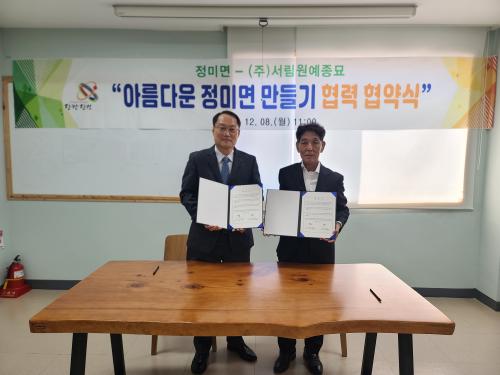 [½Åµ¿¾Æ¹æ¼Û=ÀÌÀçö±âÀÚ] Á¤¹Ì¸é ÇàÁ¤º¹Áö¼¾ÅÍ(¸éÀå ¹Ú¸í¼ö)´Â Áö³­ 8ÀÏ Áö¿ª ¹Ì°ü °³¼±°ú ÄèÀûÇÑ »ýȰȯ°æ Á¶¼ºÀ» À§ÇØ ¢ß¼­¸²¿ø¿¹Á¾¹¦(´ëÇ¥ ¼Ûº´¼ö)¿Í ¾Æ¸§´Ù¿î Á¤¹Ì¸é ¸¸µé±â Çù·Â Çù¾àÀ» ü°áÇß´Ù°í 9ÀÏ ¹àÇû´Ù. (ÁÖ)¼­¸²¿ø¿¹Á¾¹¦´Â Áö¿ª ÃâÇâ Àλ簡 ¿î¿µÇÏ´Â Á¶¡¦
