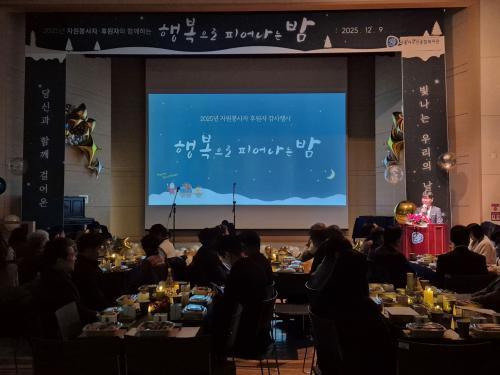 [½Åµ¿¾Æ¹æ¼Û ½ÃÈï½Ã=À̽ŵ¿±âÀÚ] ½ÃÈï½Ã³ëÀÎÁ¾ÇÕº¹Áö°ü(ÀÌÇÏ, ³ëÀκ¹Áö°ü)Àº Áö³­ 12¿ù 9ÀÏ ¡®ÇູÀ¸·Î ÇǾ´Â ¹ã¡¯À» ÁÖÁ¦·Î ¡®2025³â ÀÚ¿øºÀ»çÀÚ¡¤ÈÄ¿øÀÚ °¨»ç Çà»ç¡¯¸¦ ¿­¾ú´Ù. À̹ø Çà»ç´Â ¿Ã ÇÑ ÇØ ³ëÀκ¹Áö°ü°ú ÇÔ²² ³ª´®À» ½ÇõÇÑ ÀÚ¿øºÀ»çÀÚ¿Í ÈÄ¿øÀڵ鿡°Ô¡¦