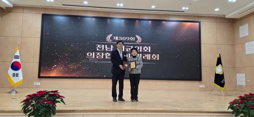 [½Åµ¿¾Æ¹æ¼Û ¿©¼ö=±è±â³² ±âÀÚ] ¹éÀμ÷ ¿©¼ö½ÃÀÇȸ ÀÇÀåÀÌ ÇöÀå Á᫐ ÀÇÁ¤È°µ¿ °ø·Î¸¦ ÀÎÁ¤¹Þ¾Æ ¡®´ëÇѹα¹Áö¹æÀÇÁ¤ºÀ»ç»ó¡¯À» ¼ö»óÇß´Ù. ´ëÇѹα¹½Ã±ºÀÚÄ¡±¸ÀÇȸÀÇÀåÇùÀÇȸ´Â Áö³­ 12ÀÏ È­¼ø±ºÀÇȸ¿¡¼­ ¿­¸° Á¦309ȸ Àü¶ó³²µµ½Ã±ºÀÇȸÀÇÀåÇùÀÇȸ ¿ù·ÊȸÀÇ¿¡¼­ ¹éÀΡ¦