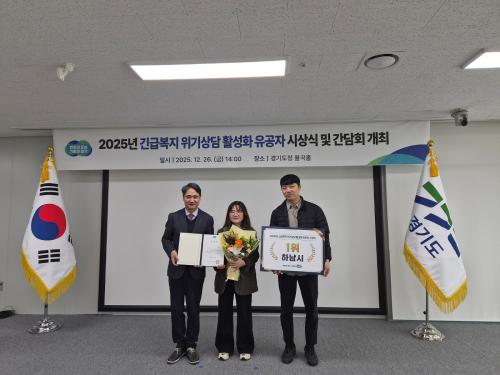 [½Åµ¿¾Æ¹æ¼Û Çϳ²½Ã=À̽ŵ¿±âÀÚ] Çϳ²½Ã´Â °æ±âµµ°¡ ÁÖ°üÇÑ ¡®±ä±Þº¹Áö À§±â»ó´ã Ȱ¼ºÈ­ ¿ì¼ö ÁöÀÚü Æò°¡¡¯¿¡¼­ 1À§·Î ¼±Á¤µÅ °æ±âµµÁö»ç ǥâÀ» ¼ö»óÇß´Ù°í ¹àÇû´Ù. À̹ø Æò°¡´Â 2025³â 1¿ùºÎÅÍ 10¿ù±îÁö °æ±âµµ ±ä±Þº¹Áö À§±â»ó´ã ÇÖ¶óÀÎ(Äݼ¾ÅÍ)À» ÅëÇØ Á¢¼öµÈ À§¡¦