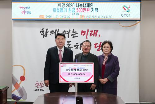 [½Åµ¿¾Æ¹æ¼Û=ÀÌÀçö±âÀÚ] ´çÁø½Ã´Â 1¿ù 7ÀÏ ¿ÀÀü ½Ãû 7Ãþ Á¢°ß½Ç¿¡¼­ ´©¸®³ó¿ø(°øµ¿´ëÇ¥ ±èÀº¼ö, ±èż÷)À¸·ÎºÎÅÍ °ü³» Ãë¾à°èÃþÀ» µ½±â À§ÇÑ ¼º±Ý 500¸¸ ¿øÀ» ±âŹ¹Þ¾Ò´Ù. À̳¯ ±âŹ½Ä¿¡´Â ´©¸®³ó¿ø ±èÀº¼ö, ±èż÷ ´ëÇ¥¸¦ ºñ·ÔÇØ ¿À¼ºÈ¯ ´çÁø½ÃÀåÀÌ Âü¼®ÇØ µû¶æÇÑ¡¦