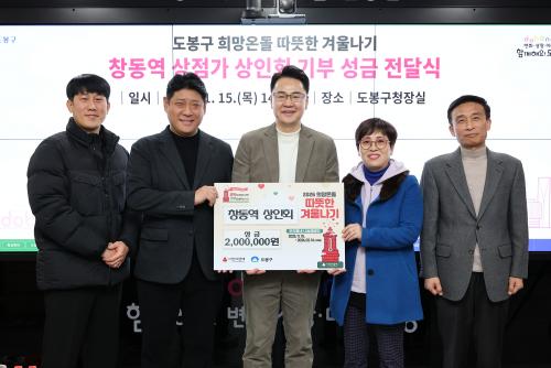 [½Åµ¿¾Æ¹æ¼Û µµºÀ±¸=À̽ŵ¿±âÀÚ] ¼­¿ï µµºÀ±¸°¡ Áö³­ 1¿ù 15ÀÏ Ã¢µ¿¿ª»óÁ¡°¡ »óÀÎȸ·ÎºÎÅÍ ¼º±Ý 200¸¸ ¿øÀ» Àü´Þ¹Þ¾Ò´Ù°í ¹àÇû´Ù. Àü´Þ¹ÞÀº ¼º±ÝÀº ¼­¿ï»çȸº¹Áö°øµ¿¸ð±Ýȸ¸¦ ÅëÇØ Áö¿ª ³» Àú¼Òµæ Ãë¾à°èÃþ Áö¿ø¿¡ »ç¿ëµÉ ¿¹Á¤ÀÌ´Ù. ¿À¾ð¼® µµºÀ±¸Ã»ÀåÀº ¡°Ã¢µ¿¿ª¡¦