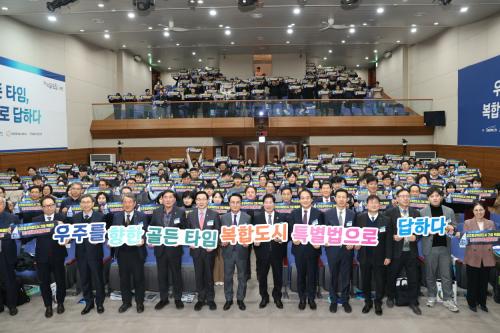 [½Åµ¿¾Æ¹æ¼Û °íÈï=¹Ú±¤¿Á±âÀÚ] °íÈﱺ(±º¼ö °ø¿µ¹Î)Àº »çõ½Ã¿Í ÇÔ²² 3ÀÏ »çõ½Ãû ´ë°­´ç¿¡¼­ ¡¸¹ÌÁö´ä »çõÆ÷·³(¿ì¸®ÀÇ ¹Ì·¡, Áö¹æ¿¡ ´äÀÌ ÀÖ´Ù)¡¹À» °øµ¿ °³ÃÖÇß´Ù. À̹ø Æ÷·³Àº ¡®¿ìÁÖ¸¦ ÇâÇÑ °ñµçŸÀÓ, º¹ÇÕµµ½Ã Ưº°¹ýÀ¸·Î ´äÇÏ´Ù¡¯¸¦ ÁÖÁ¦·Î, ±Û·Î¹ú ¿ìÁÖ»ê¾÷¡¦