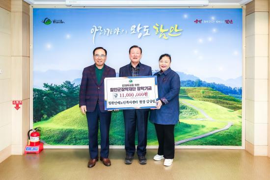 [½Åµ¿¾Æ¹æ¼Û °æ³²ÇÔ¾È=À̽ŵ¿±âÀÚ] ÇԾȱºÀº Áö³­ 12ÀÏ Ä¥¿ø ÀξֳëÀκ¹Áö¼¾ÅͰ¡ Áö¿ª ÀÎÀç À°¼ºÀ» À§ÇÑ ÀåÇбâ±Ý 1100¸¸ ¿øÀ» ÇԾȱº ÀåÇÐÀç´Ü¿¡ ±âŹÇß´Ù°í ¹àÇû´Ù. À̳¯ ±âŹ½Ä¿¡´Â ±è»óÇÊ ¿øÀå°ú ±è±âÈ­ ¼¾ÅÍÀåÀÌ Âü¼®ÇØ Áö¿ª ±³À° ¹ßÀü°ú ÀÎÀç ¾ç¼ºÀ» À§ÇÑ ¶æÀ»¡¦