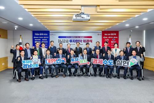 [½Åµ¿¾Æ¹æ¼Û °æ³²ÇÔ¾È=À̽ŵ¿±âÀÚ] °æ»ó³²µµ¿Í ÇԾȱºÀº Áö³­ 15ÀÏ °æ»ó³²µµÃ» µµÁ¤ ȸÀǽǿ¡¼­ ¢ßÄÚ¸¸°ú 152¾ï ¿ø ±Ô¸ðÀÇ ÅõÀÚÇù¾à(MOU)À» ü°áÇß´Ù°í ¹àÇû´Ù. À̳¯ Çù¾à½Ä¿¡´Â ±è¸íÁÖ °æ»ó³²µµ °æÁ¦ºÎÁö»ç, Á¶±ÙÁ¦ ÇԾȱº¼ö, (ÁÖ)ÄÚ¸¸ ±è´ö¿ì ´ëÇ¥À̻縦 ºñ·ÔÇÑ 6¡¦