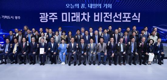 ºñÀü ¼±Æ÷¿¡ ³ª¼± ° ½ÃÀåÀº ¡°¿ì¸®´Â ¿À´Ã »õ·Î¿î ²ÞÀ» ¼±¾ðÇÑ´Ù. 100¸¸Æò ¹Ì·¡Â÷ ±¹°¡»ê´ÜÀº ±¤ÁÖÀÇ »õ·Î¿î µ¿·ÂÀÌ µÉ °Í¡±À̶ó¸ç ¡°´©±¸µµ ¼±Á¡ÇÏÁö ¸øÇÑ ¼ºÀ强ÀÌ ¹«ÇÑÇÑ ¹Ì·¡Â÷·Î ±¤ÁÖÀÇ »õ·Î¿î ¹Ì·¡¸¦ ¸¸µé¾î¾ß ÇÑ´Ù¡±°í °Á¶Çß´Ù.