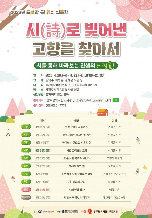 ¡®±æ À§ÀÇ Àι®ÇС¯Àº ½Ã¹ÎÀÌ °¿¬°ú ޹æ, µ¶¼¸¦ ÅëÇØ Àι®ÇÐÀ» ÇâÀ¯ÇÒ ¼ö ÀÖ°Ô Áö¿øÇÏ´Â ÇÁ·Î±×·¥ÀÌ´Ù. ¿ÃÇØ ÇÁ·Î±×·¥Àº ¡®½Ã(ãÌ)·Î ºú¾î³½ °íÇâÀ» ã¾Æ¼ : ½Ã¸¦ ÅëÇØ ¹Ù¶óº¸´Â ÀλýÀÇ ´À³¦Ç¥¡¯¸¦ ÁÖÁ¦·Î ¼ÕÅüö, ÀÌ¿ø±Ô, °Á¦À± ½ÃÀÎ µîÀÌ °¿¬ÀÚ·Î Âü¿©ÇÑ´Ù.