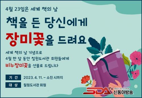 ¶ÇÇÑ ¼¼°è Ã¥ÀÇ ³¯À» ¸ÂÀÌÇØ Ä¥¿øµµ¼°ü¿¡¼´Â Ã¥À» µç ´ç½Å¿¡°Ô Àå¹Ì²ÉÀ» µå·Á¿ä, ¡®¾Æ¹« ¾¾¿Í ¹«¾ù ¾¾¡¯ ¿øÈ Àü½Ã ¹× µ¶¼ ÄûÁî, ¡®Ã¥ ÀÐ°í ¹®Àå¼öÁý¡¯ ¼öÁý¹®Àå Àü½Ã, °íµ¶ÇÑ µ¶¼°¡ µî ´Ùä·Î¿î Çà»ç¸¦ ¿î¿µÇÒ ¿¹Á¤ÀÌ´Ù.