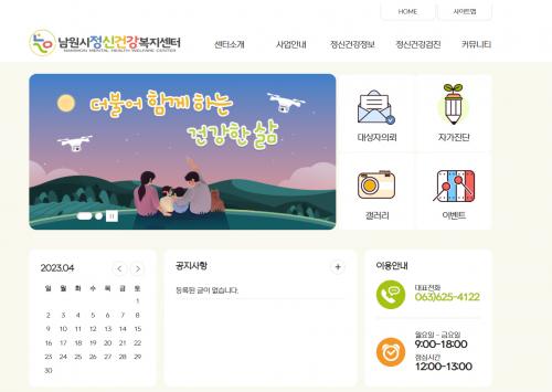 ¶ÇÇÑ ³²¿ø½Ã¹ÎÀÌ ¾ðÁ¦µçÁö ȨÆäÀÌÁö¸¦ ÅëÇØ Á÷Á¢ Àü¹®°¡ »ó´ãÀ» ½ÅûÇÒ ¼ö ÀÖ°í, ³²¿ø½ÃÁ¤½Å°Ç°­º¹Áö¼¾ÅÍÀÇ Á¤½Å°Ç°­ È«º¸¡¤Ä·ÆäÀΠȰµ¿°ú ÇÁ·Î±×·¥ ¿î¿µÇöȲ µîÀ» °øÀ¯¹Þ°í ¾Ë ¼ö ÀÖ´Ù.