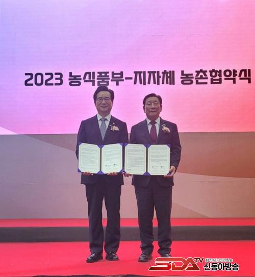 Á¤ºÎ¼¼Á¾ÄÁº¥¼Ç¼¾ÅÍ¿¡¼ °³ÃÖµÈ Çù¾à½Ä¿¡¼´Â ³ó¸²Ãà»ê½ÄǰºÎ¿Í ÁöÀÚü, Çѱ¹³ó¾îÃ̰ø»ç µî °ü°èÀÚµéÀÌ Âü¼®ÇÑ °¡¿îµ¥ Çù¾à ´ç»çÀÚÀÎ ³ó¸²Ãà»ê½ÄǰºÎ Àå°ü°ú ÇԾȱº¼ö°¡ Çù¾à¼¿¡ ÃÖÁ¾ ¼¸íÀ» Çß´Ù.