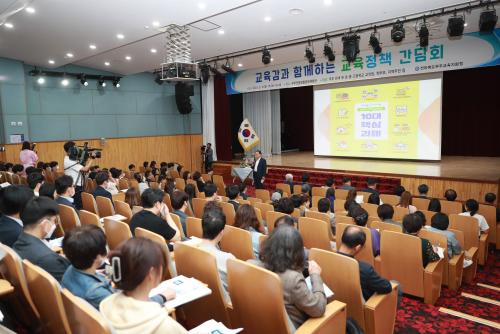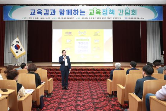 ÇöÀå ¸ÂÃãÇü ±³À°Á¤Ã¥ ¼ö¸³À» À§ÇØ Áö¿ªÀÇ »ý»ýÇÑ ¸ñ¼Ò¸®¸¦ µè´Â °Ô ¸ñÀûÀ̾ú´ø À̳¯ °£´ãȸ¿¡´Â ȲÀÎÈ« ¹«ÁÖ±º¼ö¿Í ±è½Â±â ¹«ÁÖ±³À°Áö¿øÃ» ±³À°ÀåÀÌ ÀÚ¸®¸¦ ÇÔ²²Çß´Ù.