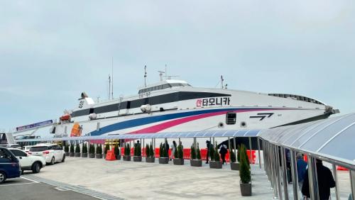 »êŸ¸ð´Ïīȣ´Â ½Â°´ 606¸í°ú Â÷·® 86´ë ¼±ÀûÀÌ °¡´ÉÇÑ 3,500Åæ ±Ô¸ðÀÇ ¼±¹ÚÀ¸·Î ½Ã¼Ó 83km ¼Óµµ·Î 1½Ã°£ 30ºÐ ¸¸¿¡ Áøµµ¿Í Á¦ÁÖ¸¦ ¿¬°áÇÏ´Â ÃÊÄè¼Ó Ä«Æä¸®ÀÌ´Ù.