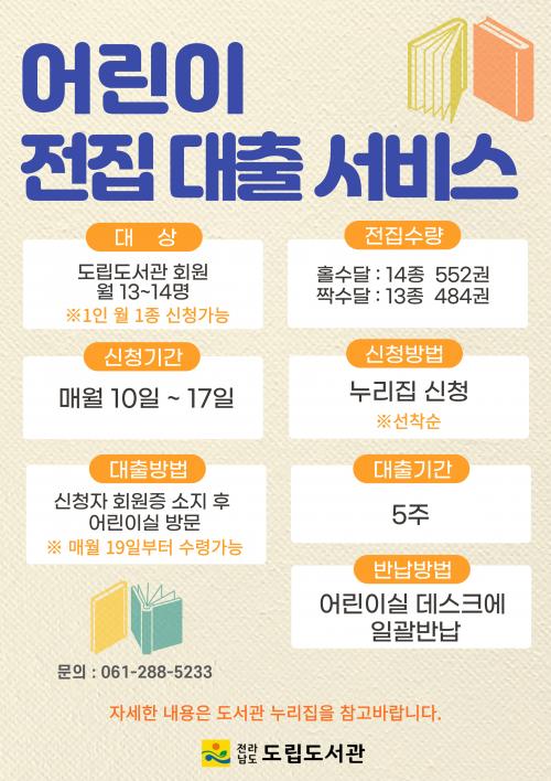 µµ¸³µµ¼°ü¿¡¼ ¿î¿µÇÏ´Â ¡®¾î¸°ÀÌ ÀüÁý ´ëÃâ ¼ºñ½º¡¯¿¡ °üÇÑ ÀÚ¼¼ÇÑ ³»¿ëÀº µµ¼°ü ´©¸®ÁýÀ̳ª ÀüÈ·Î ¹®ÀÇÇÏ¸é µÈ´Ù.