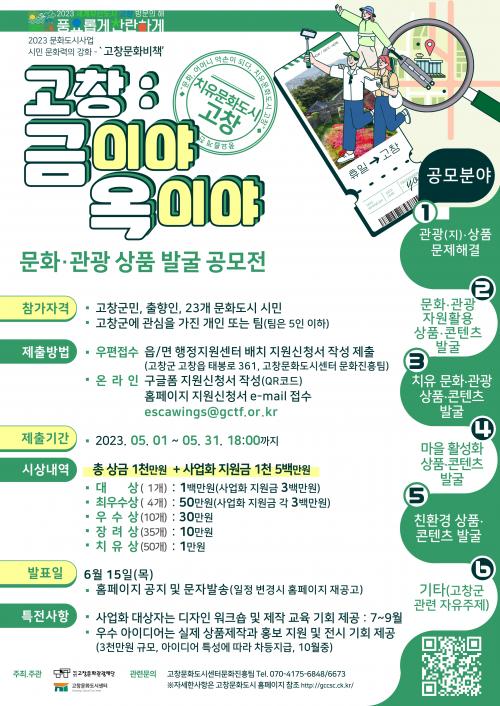 °ø¸ðÀüÀº °íâÀÇ ¼¼°è¹®ÈÀ¯»ê, ÀÚ¿¬È¯°æ, ÀüÅëÀ¯»ê, ³óƯ»êǰ µî dzºÎÇÑ ¹®È¡¤°ü±¤ÀÚ¿øÀ» Ȱ¿ëÇØ Áö¿ª ³» âÀÇÀûÀÎ ¹®È»ê¾÷À» À°¼ºÇÏ´Â °í⹮ȵµ½ÃÀÇ ÇÙ½É Àü·« »ç¾÷ÀÌ´Ù.