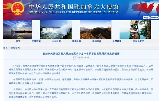 Áö³ 8ÀÏ(ÇöÁö½Ã°£) ºí·ë¹ö±×Åë½Å, AFP µî¿¡ µû¸£¸é, ij³ª´Ù Á¤ºÎ´Â Åä·ÐÅä ÁÖÀç Áß±¹ ¿µ»ç°ü ¼Ò¼Ó ÀÚ¿À¿þÀ̸¦ ¿Ü±³Àû ±âÇÇ Àι°(persona non grata, ¿Ü±³ °ü°è¸¦ ¸Î°í ÀÖ´Â ³ª¶ó°¡ ¼ö±³±¹¿¡¼ ÆÄ°ßµÈ ƯÁ¤ ¿Ü±³°üÀÇ Àü·Â ¶Ç´Â Á¤»óÀûÀÎ ¿Ü±³È°µ¿À» ¹þ¾î³ ÇàÀ§¸¦ ¹®Á¦»ï¾Æ 'ºñ¿ìÈ£Àû Àι°'¶Ç´Â '±âÇÇÀι°'·Î ¼±¾ðÇÏ´Â °ÍÀ» ÀǹÌÇÏ´Â ¿Ü±³¿ë¾î)·Î ÁöÁ¤ÇØ Ãß¹æÇÑ´Ù°í ¹àÇû´Ù.