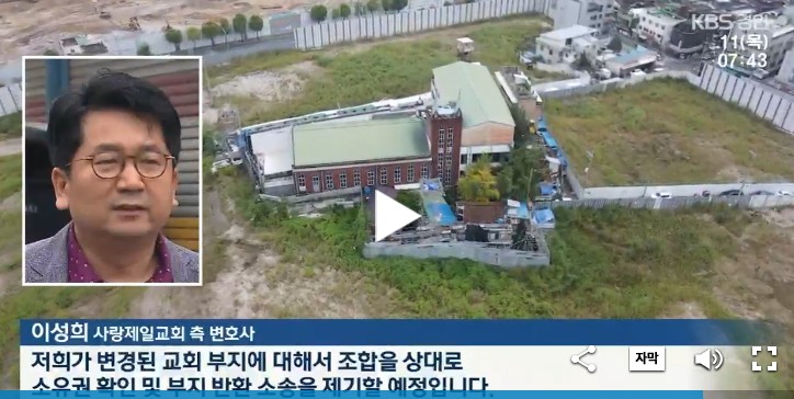 À̼ºÈñ/»ç¶ûÁ¦Àϱ³È¸ Ãø º¯È£»ç: "ÀúÈñ°¡ º¯°æµÈ ±³È¸ ºÎÁö¿¡ ´ëÇØ¼ Á¶ÇÕÀ» »ó´ë·Î ¼ÒÀ¯±Ç È®ÀÎ ¹× ºÎÁö ¹Ýȯ ¼Ò¼ÛÀ» Á¦±âÇÒ ¿¹Á¤ÀÔ´Ï´Ù." (kbs´º½º 2023. 05. 12)