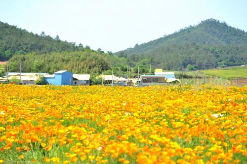 12ha¿¡ À̸£´Â ¸éÀûÀÇ ¼ö¼±È°¡ Â÷ÁöÇÑ ÀÚ¸®¿¡ ³ë¶õ ±Ý¿µÈ°¡ ÇÇ¾î º½¹Ù¶÷¿¡ Çϴ🮴 ¸ð½ÀÀÌ ÃàÁ¦¸¦ ³õÄ¡°í µÚ´Ê°Ô ¼±µµ¸¦ ã¾Æ¿Â ¹æ¹®°´µé¿¡°Ô ¹Ý°¡¿òÀ» Ç¥Çϰí ÀÖ´Ù.