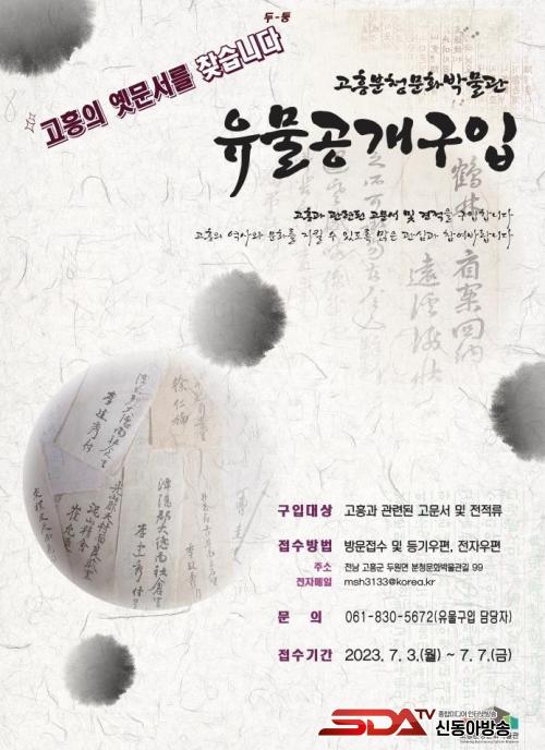 À¯¹°¸Åµµ ½ÅûÀº °íÈﱺ°ú °íÈïºÐû¹®È¹Ú¹°°ü ´©¸®Áý¿¡¼ ½Åû¼·ù¸¦ ³»·Á¹Þ¾Æ ÀÛ¼ºÇÑ ÈÄ 2023³â 7¿ù 3ÀϺÎÅÍ 7ÀϱîÁö °íÈïºÐû¹®È¹Ú¹°°ü ¹æ¹® ¶Ç´Â µî±â¡¤ÀüÀÚ¿ìÆíÀ¸·Î Á¢¼öÇÏ¸é µÈ´Ù.
