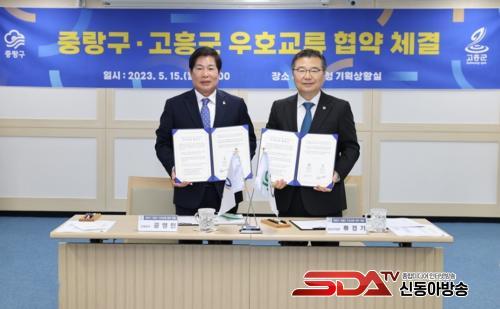 ÀÌ¿¡ °ø¿µ¹Î °íÈﱺ¼ö´Â ¡°¿À´Ã ¼¿ï½Ã Áß¶û±¸¿Í ¿ì¸® °íÈﱺÀÌ ¿ìÈ£ ±³·ù·Î Àο¬À» ¸Î°Ô µÇ¾î ¸Å¿ì ¶æ±í°Ô »ý°¢ÇÑ´Ù¡±¸é¼, ¡°¼¿ï µ¿ºÏºÎÀÇ ±³Åë ¿äÃæÁöÀÌÀÚ ¼¿ï ´ëÇ¥ ³ì»ö µµ½ÃÀÎ Áß¶û±¸¿Í ¼ö·ÁÇÑ ÀÚ¿¬°æ°ü, ûÁ¤ ³ó¼ö»ê¹°À» ºñ·ÔÇØ ¿ìÁÖÇ×°ø, ½º¸¶Æ®ÆÊ µî ÷´Ü »ê¾÷ÀÇ Áß½ÉÁöÀÎ °íÈïÀÌ ¼·ÎÀÇ À©À© ÆÄÆ®³Ê·Î¼ µµ³ó »ó»ýÀÇ ¸ð¹ü»ç·Ê°¡ µÇµµ·Ï ÃÖ¼±À» ´ÙÇϰڴ١±°í È´äÇß´Ù.