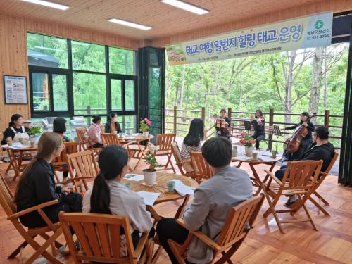 Âü°¡ÀÚµéÀº »ï»ê¸é ¹«¼±µ¿ ÇÑ¿Á¸¶À»¿¡¼ Àӽźο¡°Ô ÁÁÀº ¿ä¸®±³½Ç°ú ½Ä»ç ÈÄ Èæ¼®»ê ÀÚ¿¬È޾縲 ½£¼Ó °È±â¿Í ½ÌÀ׺¼ ¸í»ó, ű³ ¿ä°¡, Á·¿å, ¿ìµå¹ö´× µî ÀÚ¿¬ ¼Ó¿¡¼ °È±â, ¸í»ó, ¿ä°¡¸¦ ÅëÇØ ¸ö°ú ¸¶À½ÀÇ ¾ÈÁ¤À» ã´Â ½Ã°£À» °¡Á³´Ù.