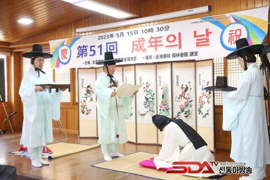 ¼º³â·Ê¿¡ Âü°¡ÇÑ ÇлýµéÀº ¡°ÀüÅëÀǺ¹°ú ¸Ó¸®¸ð¾çÀÌ ¾î»öÇÏ°í ¹«¸À» ²Ý°í ÀýÀ» ÇÏ´Â °ÍÀÌ Èûµé¾úÁö¸¸ ¼ºÀÎÀÌ µÈ´Ù´Â °Í¿¡ ´ëÇØ ÁøÁöÇÏ°Ô »ý°¢ÇÒ ¼ö ÀÖ´Â ½Ã°£À̾ú°í ÀλýÀÇ ³ªÄ§¹Ý°ú °°Àº À̸§ÀÌ »ý°Ü ±âºÐÀÌ ÁÁ°í »ÑµíÇÏ´Ù. ¿À´Ã ÇϷ縦 Æò»ý ÀØÀ» ¼ö ¾øÀ» °Å °°´Ù.¡±¸ç ¼Ò°¨À» ÀüÇß´Ù.