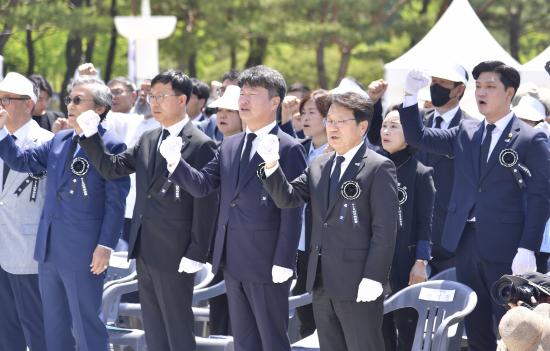 [½Åµ¿¾Æ¹æ¼Û=³²À¯¼®±âÀÚ] °±âÁ¤ ±¤ÁÖ±¤¿ª½ÃÀåÀÌ 17ÀÏ ¿ÀÀü ºÏ±¸ ¿îÁ¤µ¿ ±¹¸³5¡¤18¹ÎÁÖ¹¦Áö¿¡¼ ¿¸° 'Á¦43ÁÖ³â 5¡¤18¹ÎÁÖȿ Ã߸ðÁ¦'¿¡ Âü¼®ÇØ Ã߸ð»ç¸¦ Çϰí ÀÖ´Ù.
