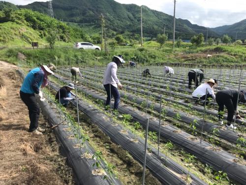 À̳¯ Á÷¿øµéÀº º»¿¬ÀÇ ¾÷¹«¸¦ Àá½Ã Á¢¾îµÎ°í Áö»ç¸é °ü±â¸® ³ó°¡¸¦ ã¾Æ °íÃß ½É±â Àü ±è¸Å±â ÀÛ¾÷À¸·Î ±¸½½¶¡À» Èê·ÈÀ¸¸ç, Àη³À¸·Î ÀÛ¾÷Çϱ⠸·¸·Çß´ø ³ó°¡ÀÇ °ÆÁ¤À» ´ú¾îÁá´Ù.