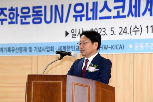[½Åµ¿¾Æ¹æ¼Û=³²À¯¼®±âÀÚ] °±âÁ¤ ±¤ÁÖ±¤¿ª½ÃÀåÀÌ 24ÀÏ 5‧18¹ÎÁÖȿ±â·Ï°ü¿¡¼ ¿¸° '5‧18¹ÎÁÖȿ Á¦43ÁÖ³â ¹× À¯³×½ºÄÚµîÀç 12Áֳ⠱â³äÇà»ç'¿¡ Âü¼®ÇØ °Ý·Á»ç¸¦ Çϰí ÀÖ´Ù.